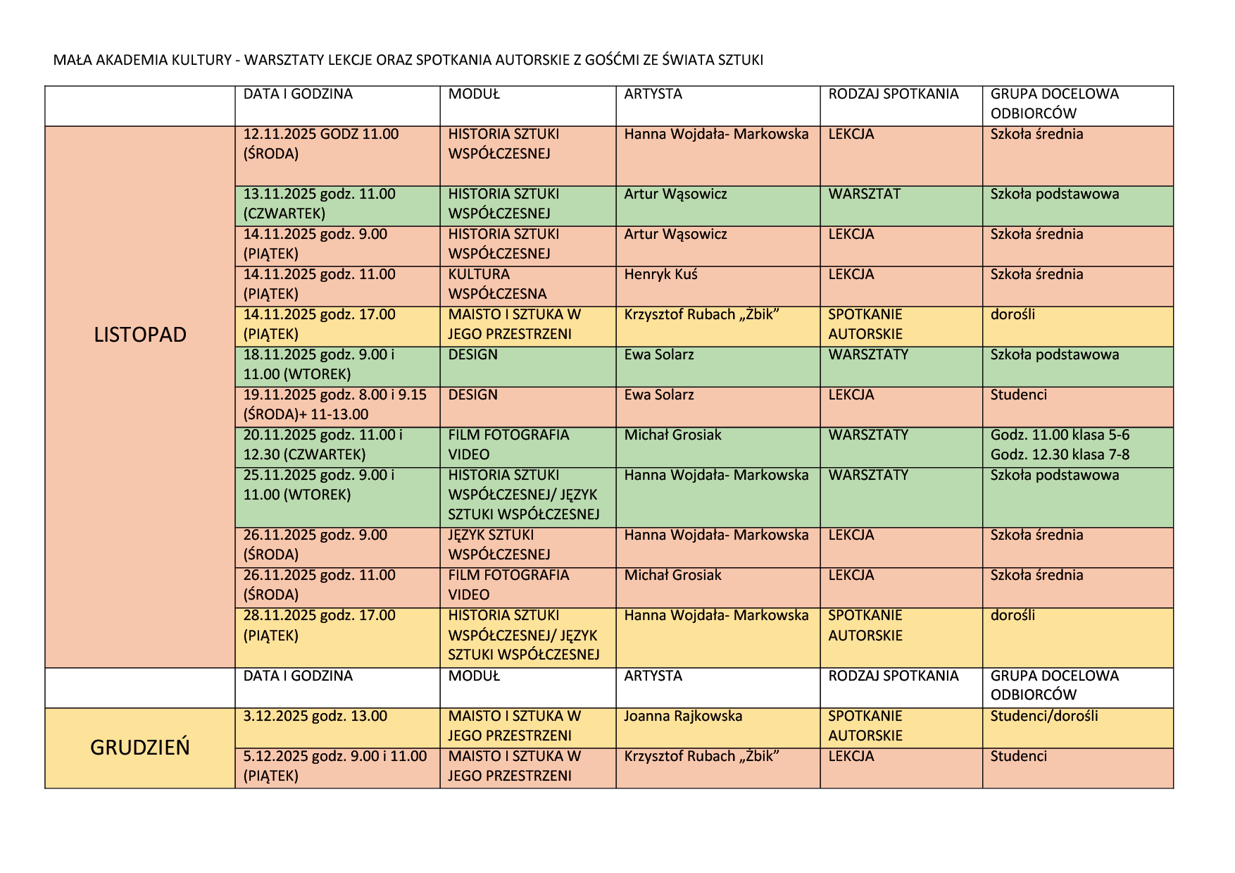 Mazowieckie Centrum Sztuki Współczesnej „Elektrownia” w Radomiu zaprasza uczniów szkół podstawowych, młodzież szkół ponadpodstawowych, studentów oraz osoby dorosłe do udziału w nowym programie edukacyjnym poświęconym kulturze i sztuce współczesnej. Mała Akademia Kultury Współczesnej to cykl bezpłatnych zajęć, warsztatów i lekcji prowadzonych przez edukatorów i zaproszonych artystów, których celem jest rozwijanie kreatywności, wrażliwości estetycznej i umiejętności krytycznego odbioru współczesnej kultury wizualnej. Spotkania łączą teorię z praktyką, refleksję z doświadczeniem i rozmowę z twórczym eksperymentowaniem. Uczestnicy Akademii poznają zjawiska artystyczne XX i XXI wieku, relacje między kulturą wysoką a masową, a także rolę sztuki w świecie nowych technologii i mediów. Program został opracowany z myślą o młodych ludziach, którzy chcą zrozumieć współczesną kulturę i odnaleźć się w jej dynamicznej rzeczywistości.
